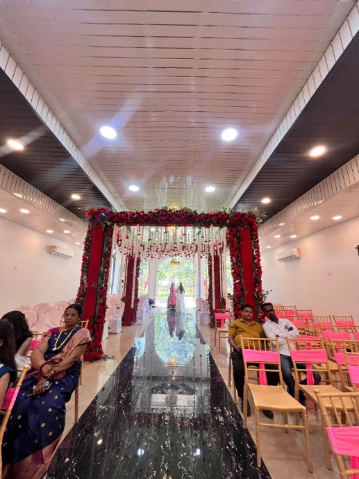 Our exquisite party hall can accommodate 350 wedding guests, and our massive, lush green lawn can entertain up to 2000 guests. Our resort is an ideal blend of sophistication and natural beauty for a memorable wedding. There's also ample space for parking.